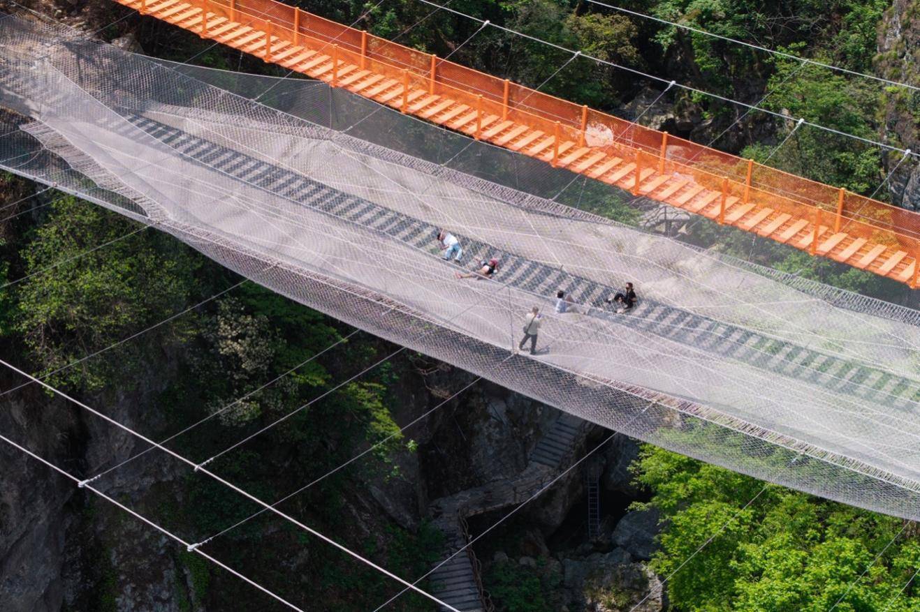 活动当天,茶境山街、悬崖缆车、关山峡谷、水街四大景区核心产品重磅亮相。茶境山街以 “镜映千年茶路” 为设计理念,打造古道擂茶、黑茶咖啡、山大王等多种主题餐饮业态,听风阁、草帽书店等文化业态;悬崖缆车穿越雄奇秀美的关山峡谷,飞流直下的悬崖瀑布美不胜收;关山峡谷是负氧离子浓度高达4000+的天然氧吧,有全国最大规模高山峡谷巨型蜘蛛网,横跨峡谷最高点,浓缩出马帮行走山间云端的最强体验,峡谷还创意还原安化茶马文化的情景演绎,将700 米峡谷栈道打造成山水沉浸式类戏剧空间;水街再现中俄万里茶道沿线上精彩各异的生活场景,为往来食客展现古代欧亚商贸线上的异域风情。